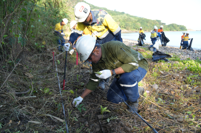 Sebagai bagian dari kegiatan tersebut, perusahaan menanam sekitar 1.000 anakan vetiver di sepanjang garis pantai.