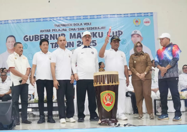 potretmaluku.id – Gubernur Maluku, Hendrik Lewerissa resmi membuka Turnamen Bola Voli antar pelajar SMA/SMK/Sederajat memperebutkan piala Gubernur Maluku 2025 di Sporthal Karang Panjang, Selasa (2/9/2025).