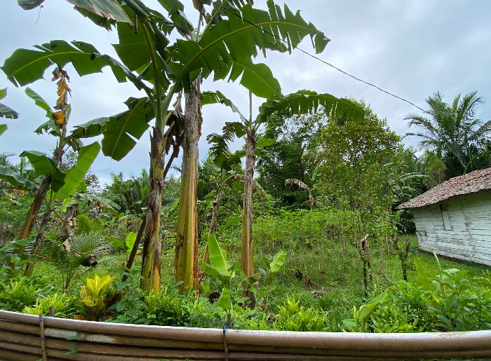 Tak jauh dari pesisir, di balik deretan rumah-rumah warga, hamparan kebun kecil masih menyimpan jejak ketahanan pangan masa lalu. Pisang tumbuh di antara keladi dan kasbi (singkong), tapi kebun-kebun itu kini tak seramai dulu.