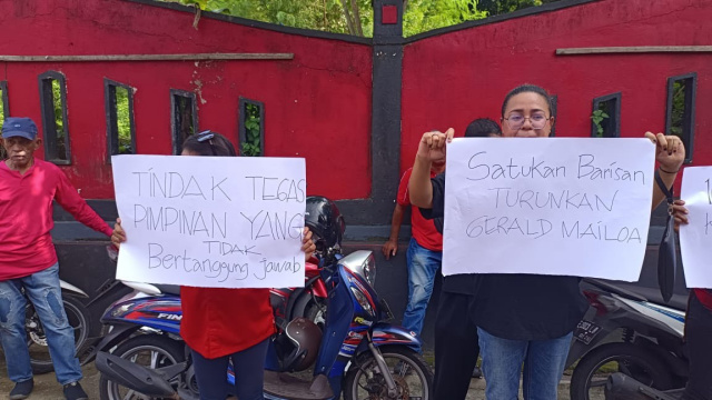 Dalam aksi protes tersebut, mereka mendesak Dewan Pimpinan Daerah (DPD) hingga Dewan Pimpinan Pusat (DPP) PDIP segera mencopot Gerald Mailoa Ketua DPC PDIP Kota Ambon.