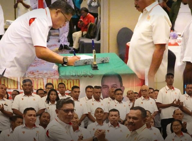 potretmaluku.id – Ketua Umum (Ketum) Komite Olahraga Nasional Indonesia (KONI) Provinsi Maluku, Sam Latuconsina resmi melantik pengurus KONI Kota Ambon masa bakti 2025-2029 di Swiss-Belhotel Ambon, Sabtu (18/4/26).