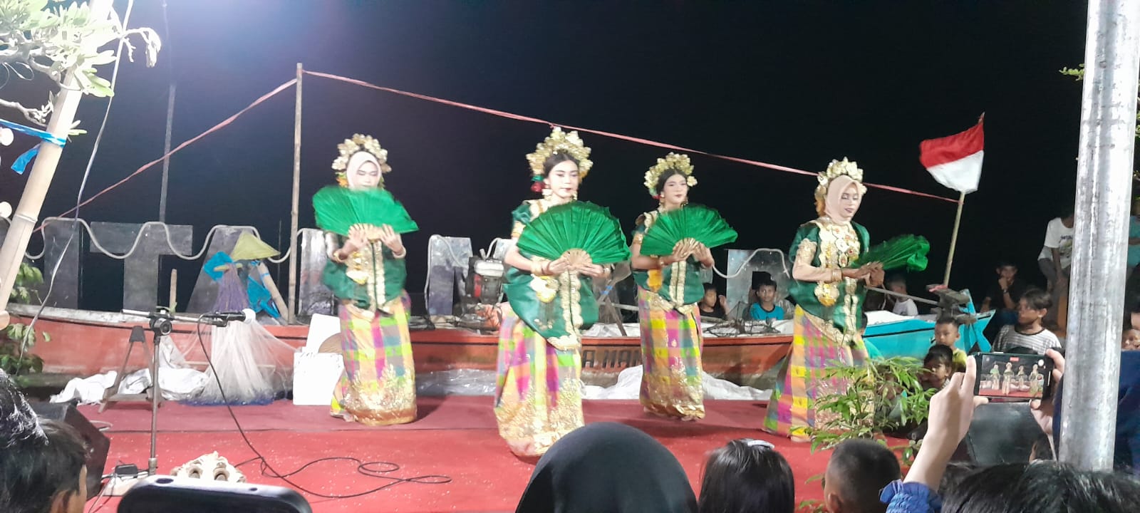 potretmaluku.id – Perahu lengkap dengan baling-baling, dayung, jaring, alat tangkap kepiting, tali, kerang, dan benda-benda yang biasa dipakai nelayan jadi seting panggung Pertunjukan Muara Sungai, Laut, dan Tallo Bersejarah, yang berlangsung sejak Minggu pagi, 21 Juli 2024.